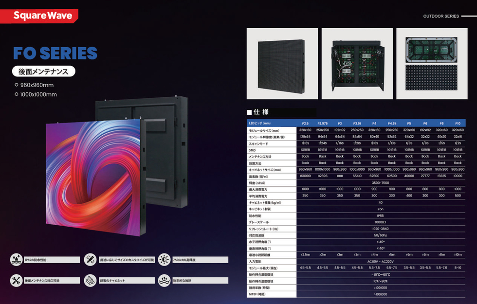 弊社では新たにリーズナブルな屋外用デジタルサイネージの販売を始めます!サイズは1000×1000から大型スクリーンまで対応可能です。取付工事、広告データ作成、保守メンテナンス等一括で弊社にお任せください。福岡近郊のお客様には出張にて実物製品のデモンストレーションもできますので、まずはお気軽にお問い合わせください!